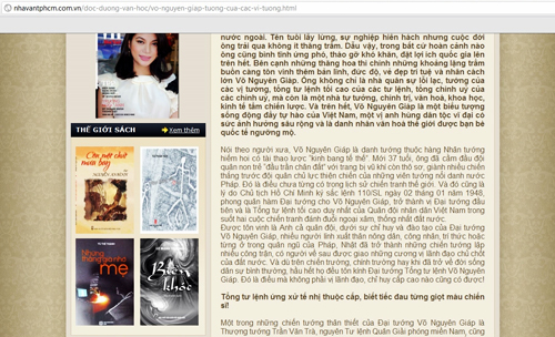 Mới đây, cũng viết về Đại tướng Võ Nguyên Giáp nhưng tác giả Phan Hoàng